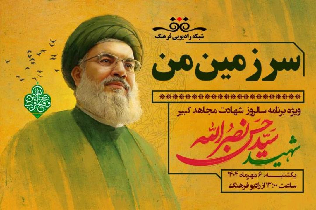 ویژهبرنامه «سرزمین من» به مناسبت سالگرد شهادت سید حسن نصرالله، امروز یكشنبه ساعت 13 از رادیو فرهنگ پخش میشود. در این برنامه، ابعاد مختلف زندگی و شخصیت دبیركل شهید حزبالله لبنان در چهار محور «زندگی و شخصیت»، «رهبری و تحولات حزبالله»، «جایگاه منطقهای و جهانی» و «میراث و آینده مقاومت پس از شهادت» بررسی خواهد شد.