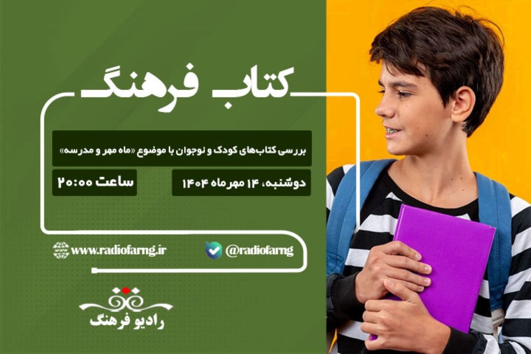 برنامه «كتاب فرهنگ» دوشنبههای كودك و نوجوان در روز دوشنبه 14 مهر، ساعت 20 با محوریت معرفی و بررسی كتابهای حوزه كودك و نوجوان با موضوع «ماه مهر و مدرسه» از شبكه رادیویی فرهنگ پخش میشود.